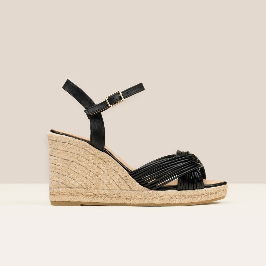 Elevate your style with AZA Black espadrilles. Classic black wedges, with a chic interlaced design at front, these shoes add a touch of luxury to any outfit. Embrace simplicity with unparalleled elegance.