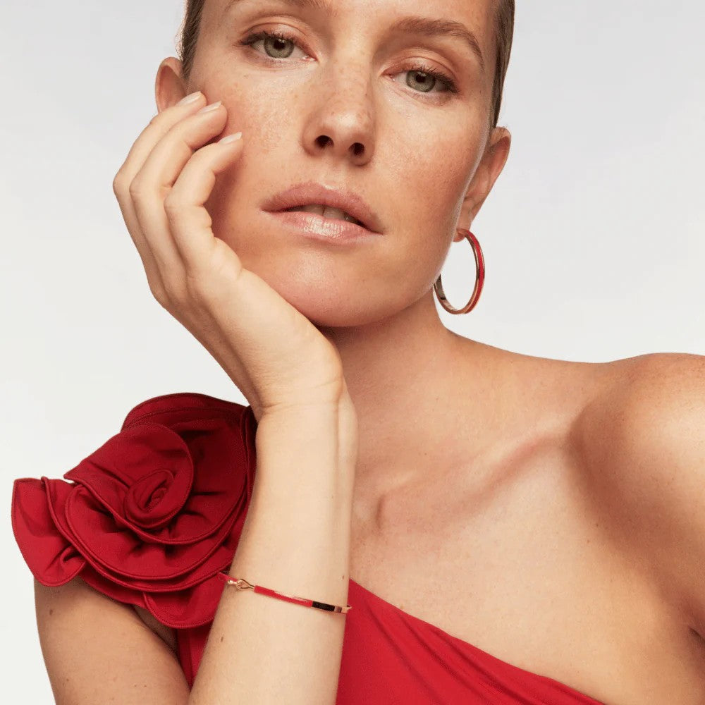 - Bracelet with “Drop” clasp in brass, gold finish and colored enamel.