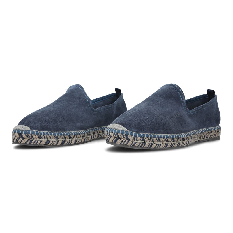 Discover the ultimate comfort and style with the CANGREJO Marine suede espadrilles, crafted from luxurious suede leather. This unique Men footwear boasts an ergonomic design for a perfect fit, making it ideal for all-day wear. Part of the sustainable collection, these shoes feature a 1.5cm recycled rubber sole with jute braid, TR Cristal (35% recovered material and 10% algae), and 100% regenerated thread.