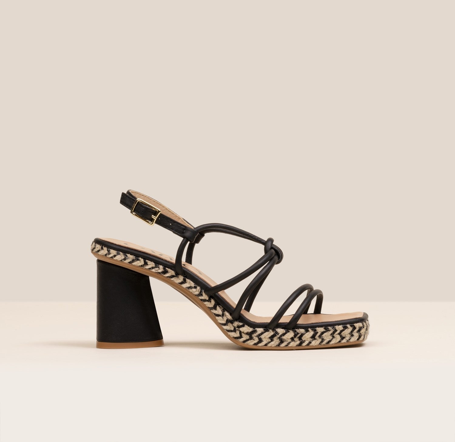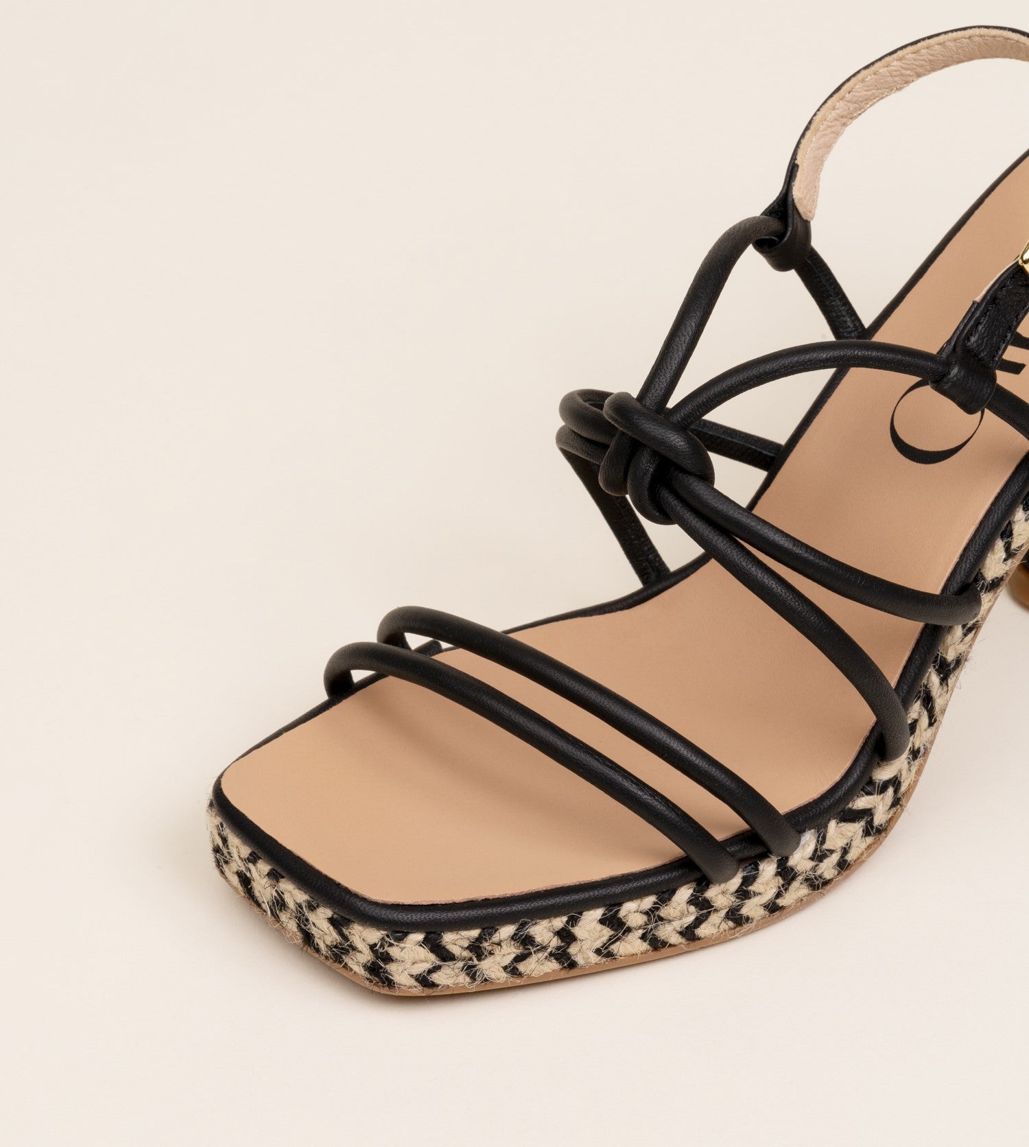 Crafted with an eye for artistry and flair for fashion, CLOPIN heels are sure to add a touch of elegance to any ensemble. Enjoy the grace and sophistication of these one-of-a-kind heels. Leather cushioned insole and lining with 9.5cm organic jute heel and 4cm platform. Designed and traditionally crafted in Spain.