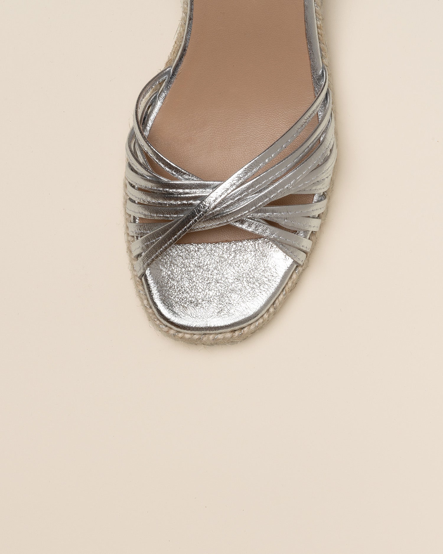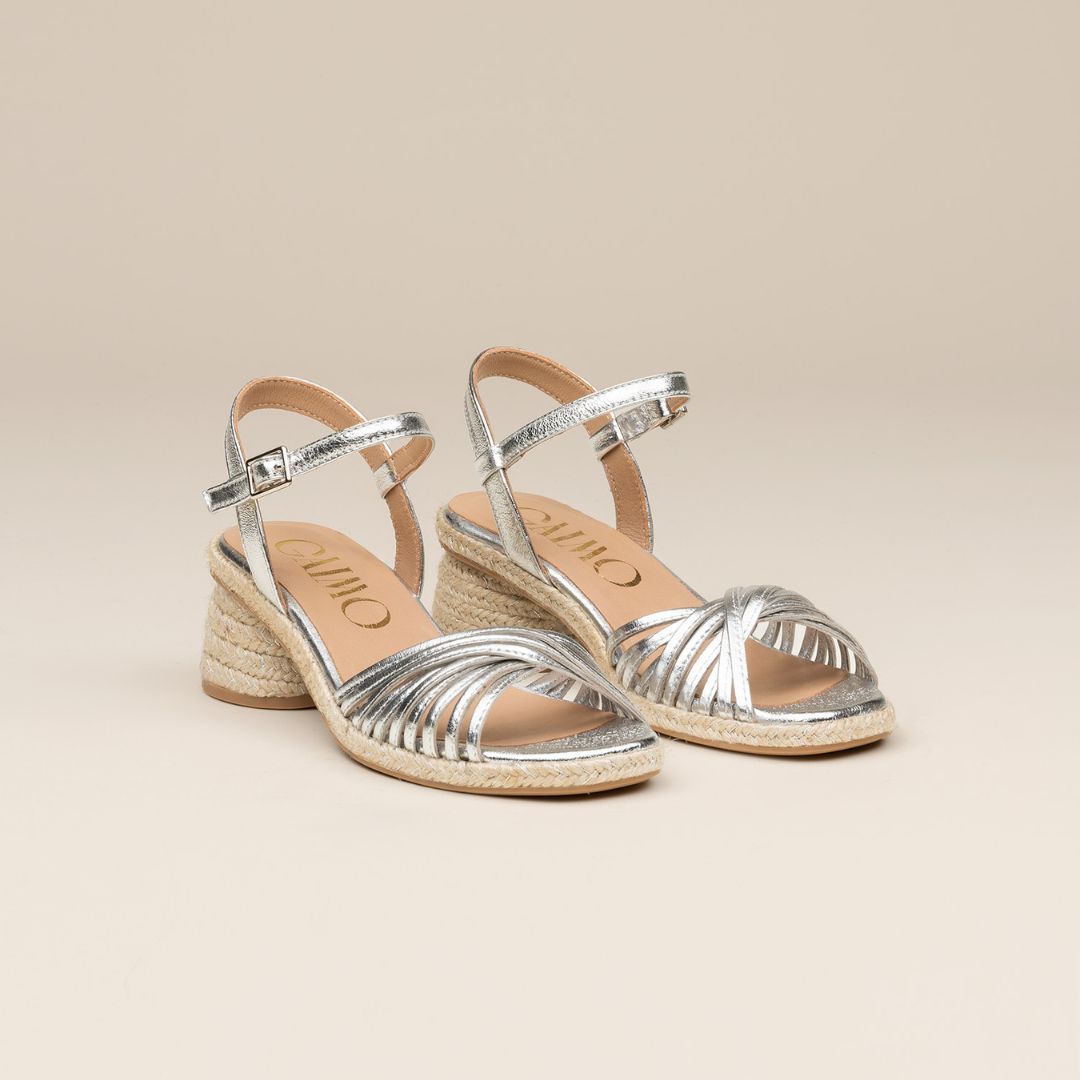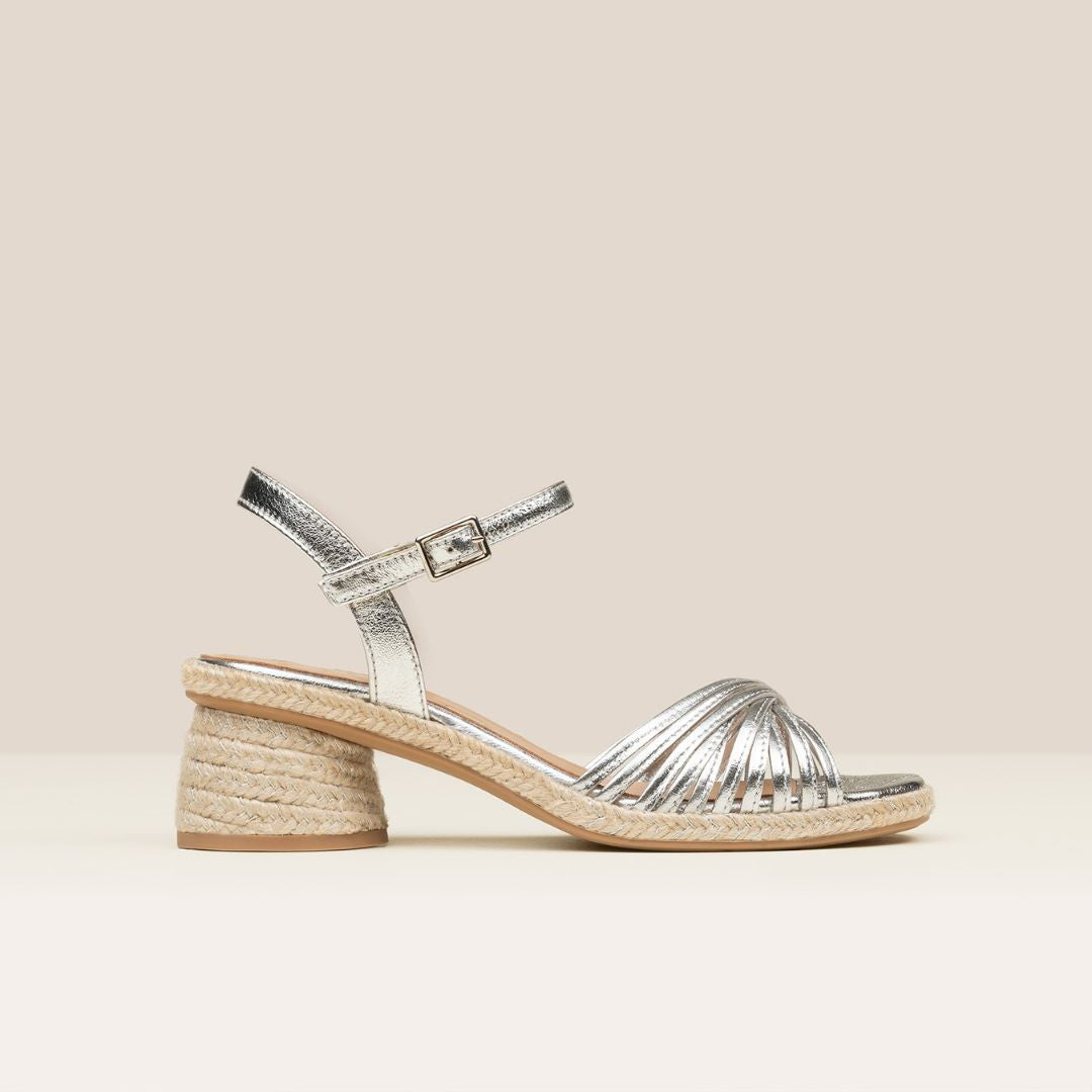 Indulge in NARCISA mid-heels, in silver leather, featuring an elegant ankle strap and jute heel, for a stunning and versatile day-to-night look ✨