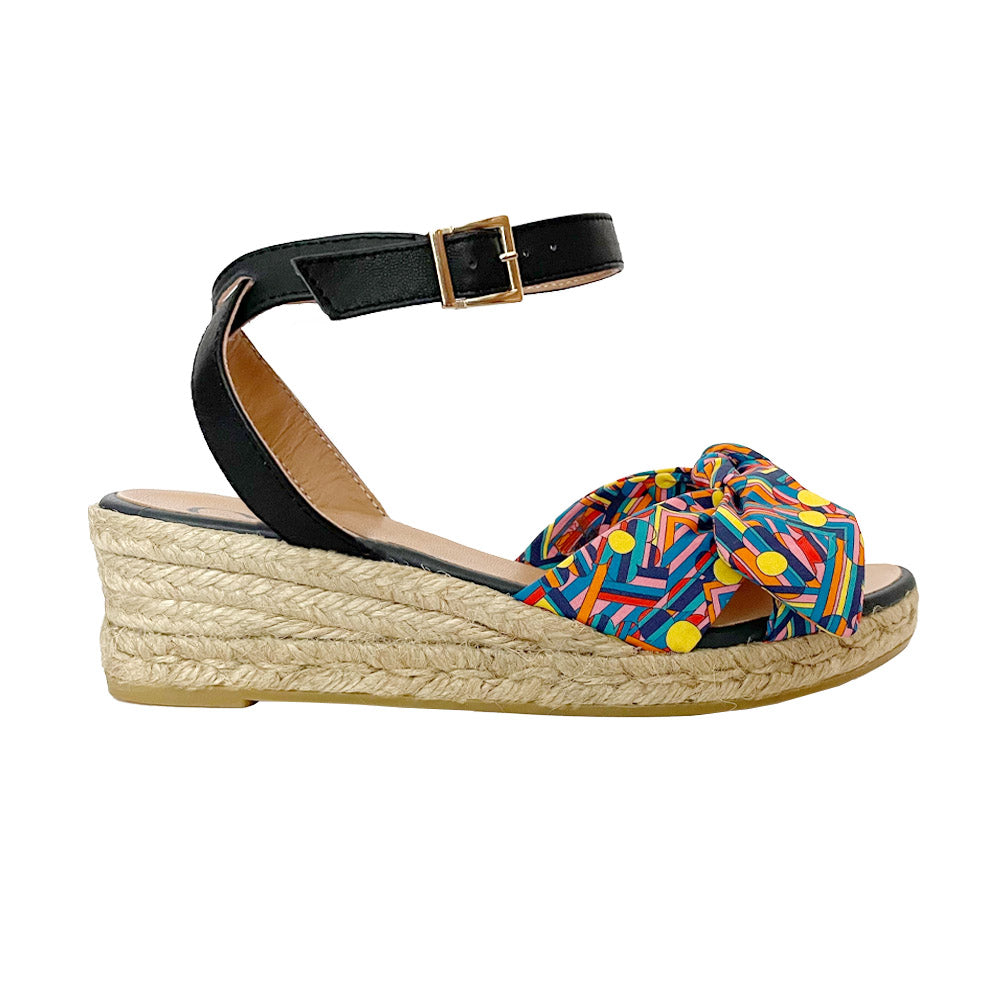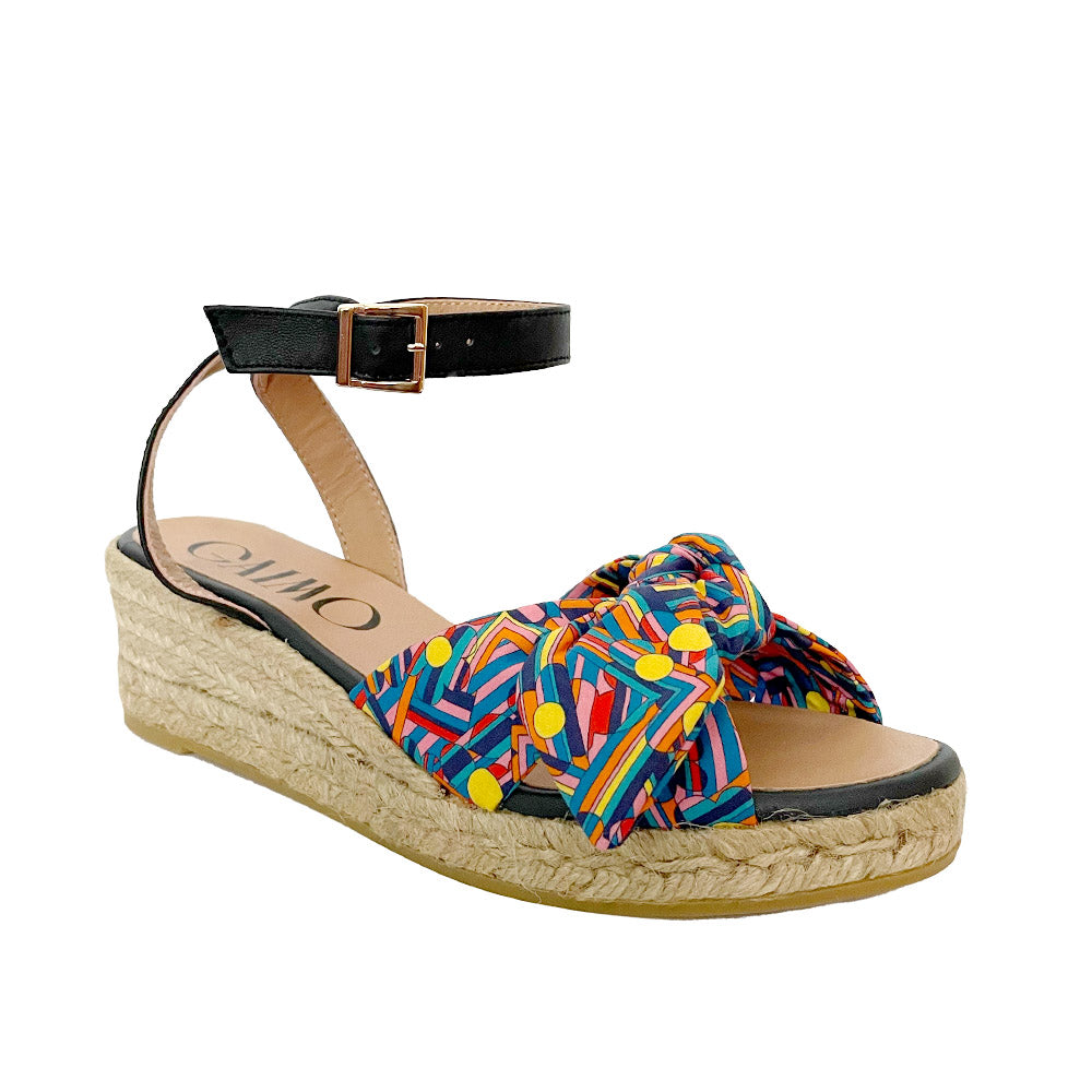 A chic Liberty bow strap in the front, a crossed leather ankle strap, a new design that joins the playful world of Bastide Colombe x Elizabeth Little collaborations!