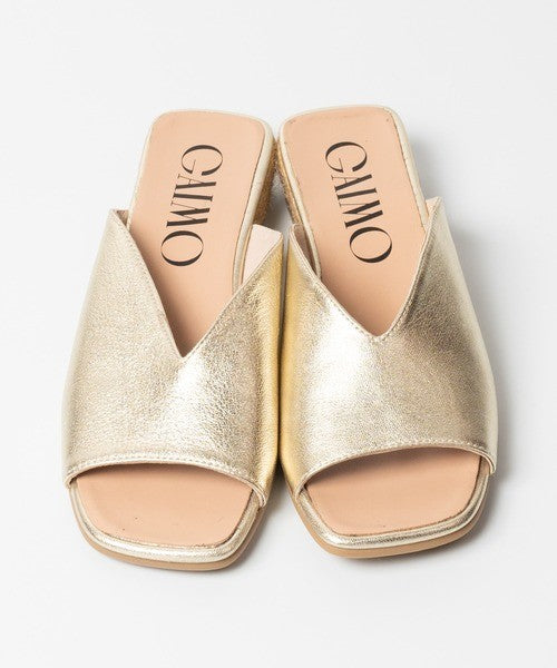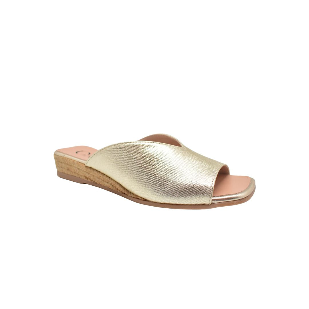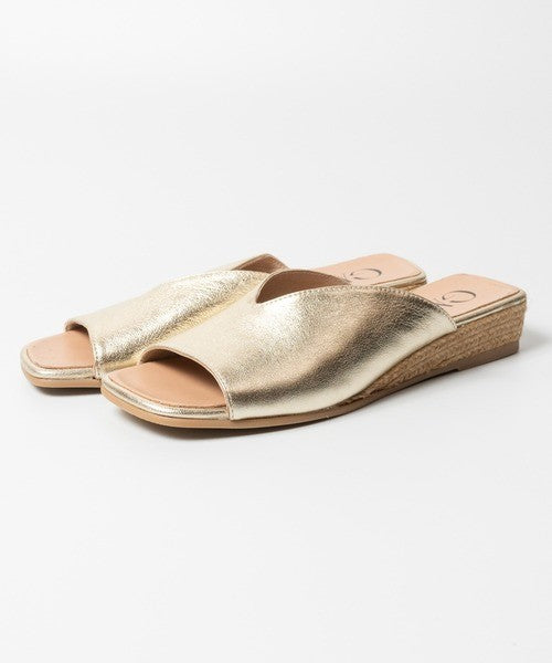 TIANA espadrilles are back in a gorgeous gold leather. These mules feature a chic V-cut and a comfortable 3cm wedge heel. The padded insole, made from soft goat's skin, adds an extra touch of sophistication.