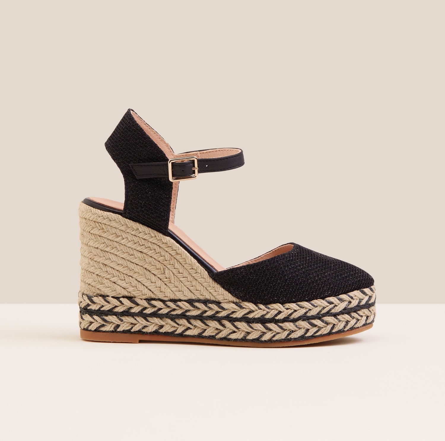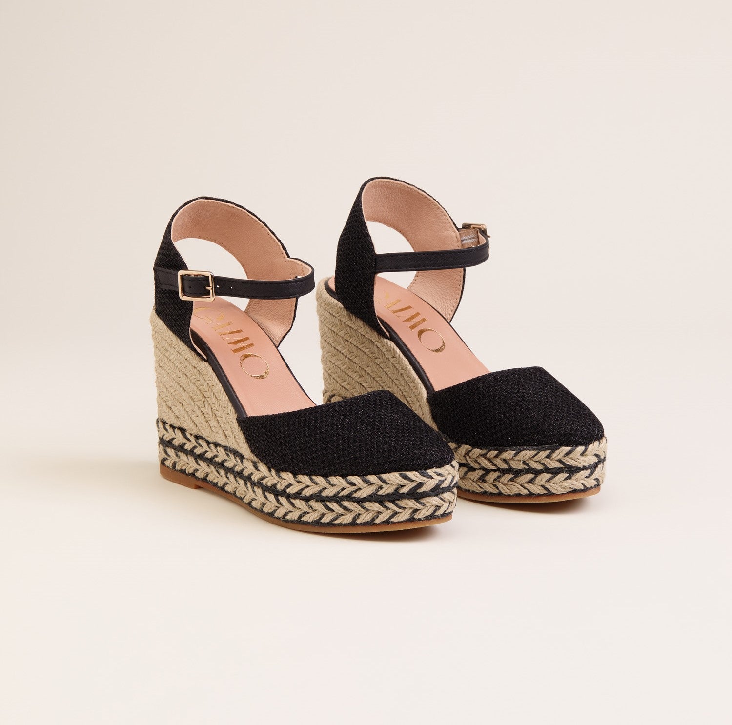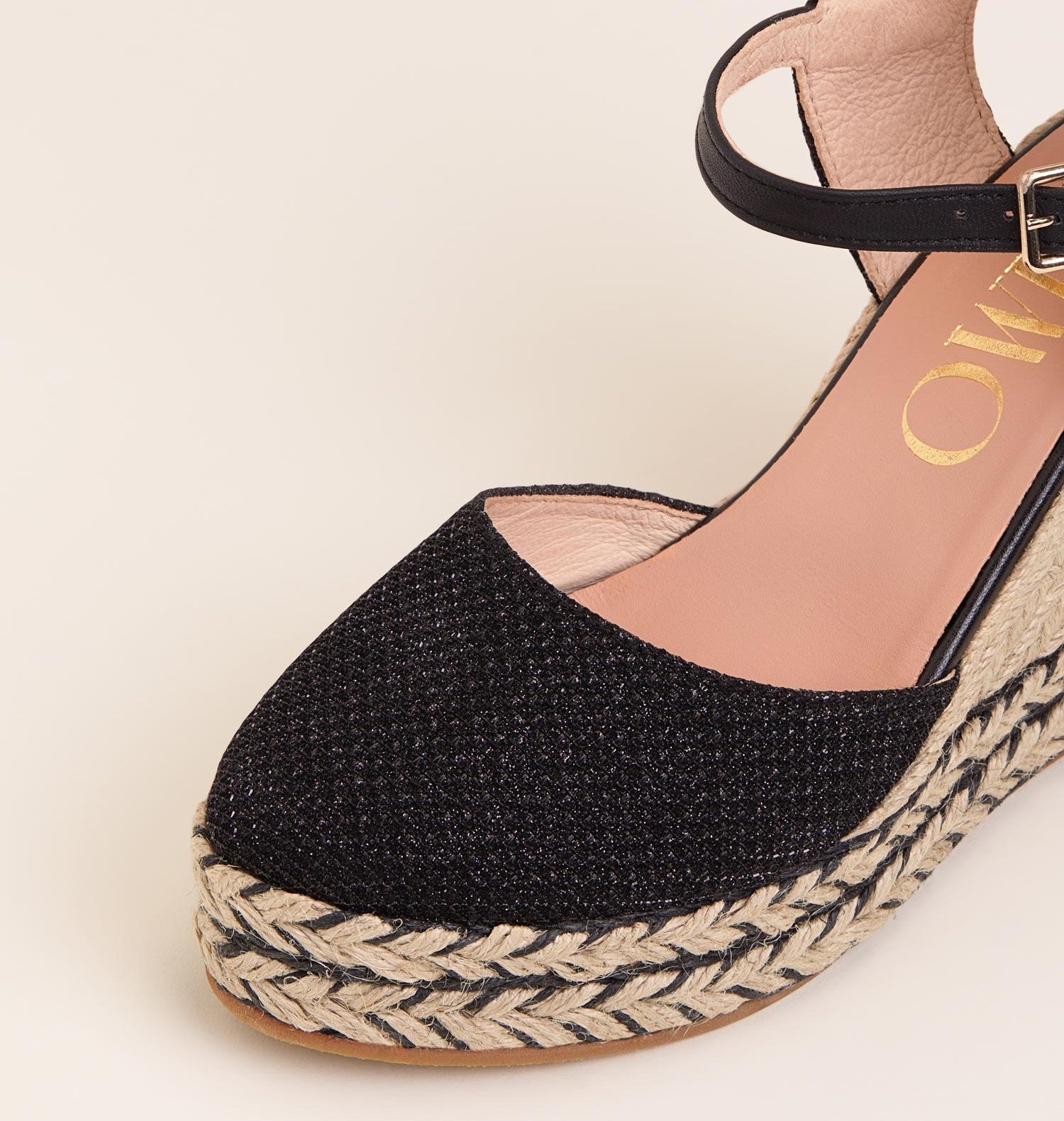 Wedges in metallic mesh fabric. Tiri style in leather with closed upper and open heel with ankle strap and side-buckle closure. Leather cushioned lining and insoles with 9.5cm organic jute heel, including 2.5cm platform. Designed and traditionally crafted in Spain, they’re the perfect choice for gaining a little height and adding a striking finishing touch to your look without compromising on comfort.