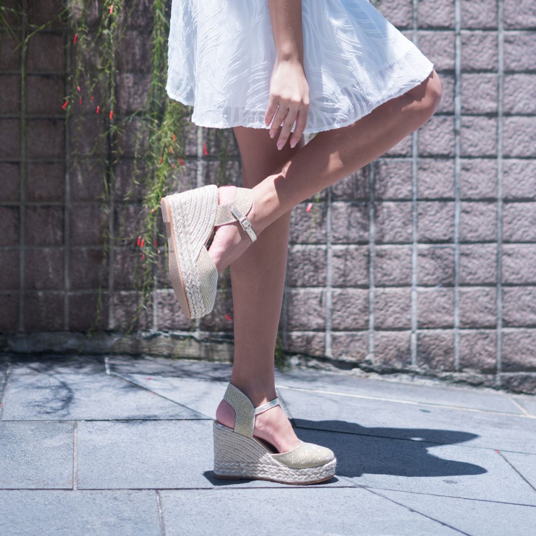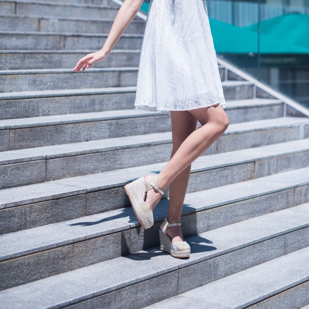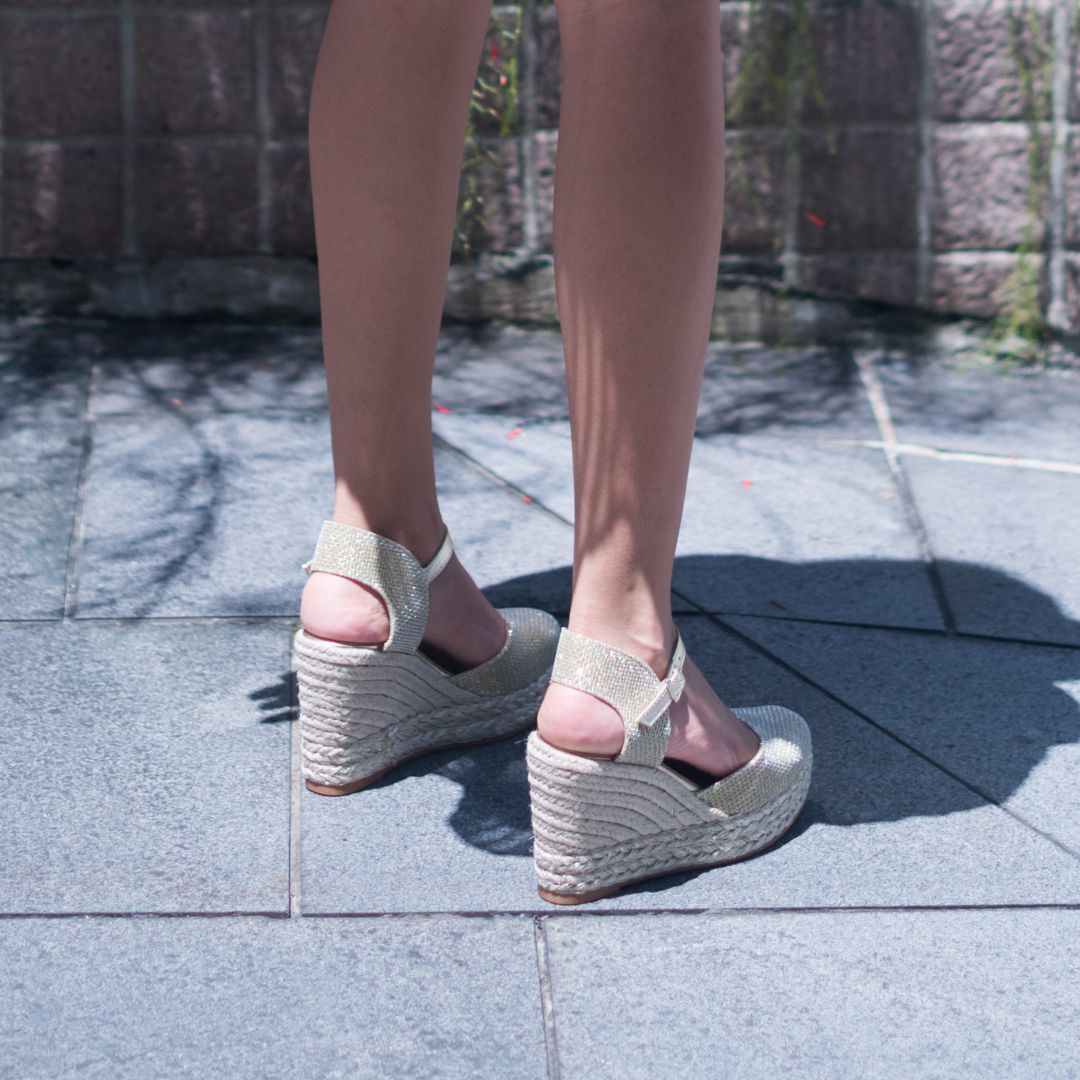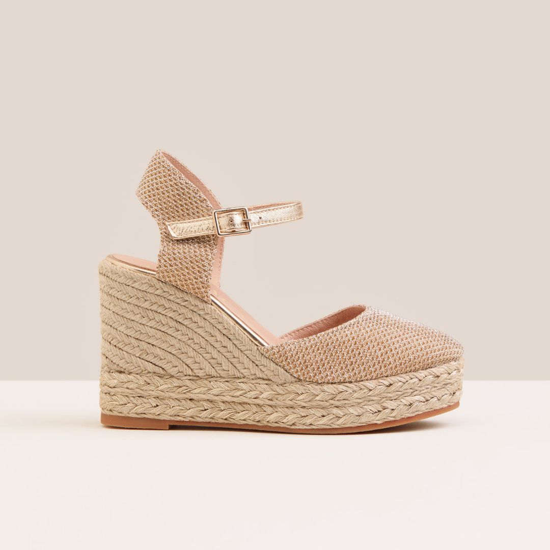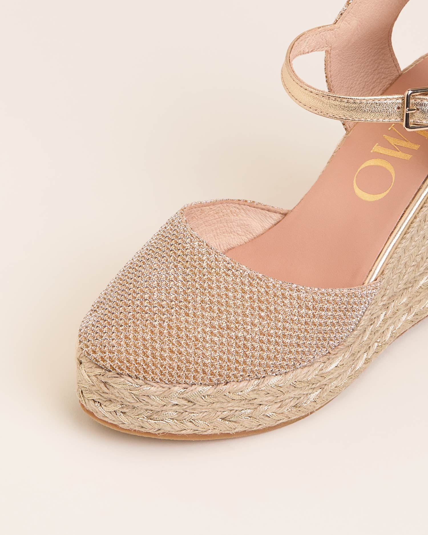 Wedges in metallic mesh fabric. Tiri style in leather with closed upper and open heel with ankle strap and side-buckle closure. Leather cushioned lining and insoles with 9.5cm organic jute heel, including 2.5cm platform. Designed and traditionally crafted in Spain, they’re the perfect choice for gaining a little height and adding a striking finishing touch to your look without compromising on comfort.