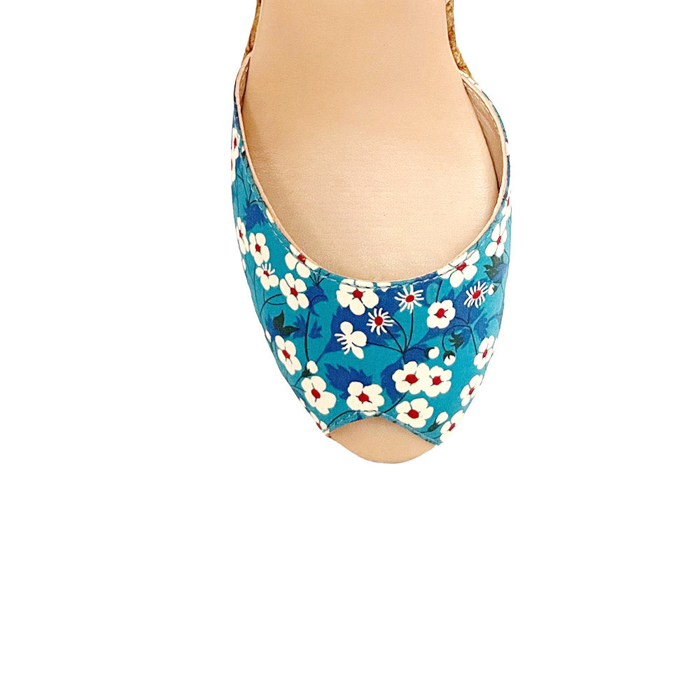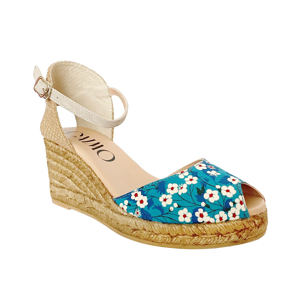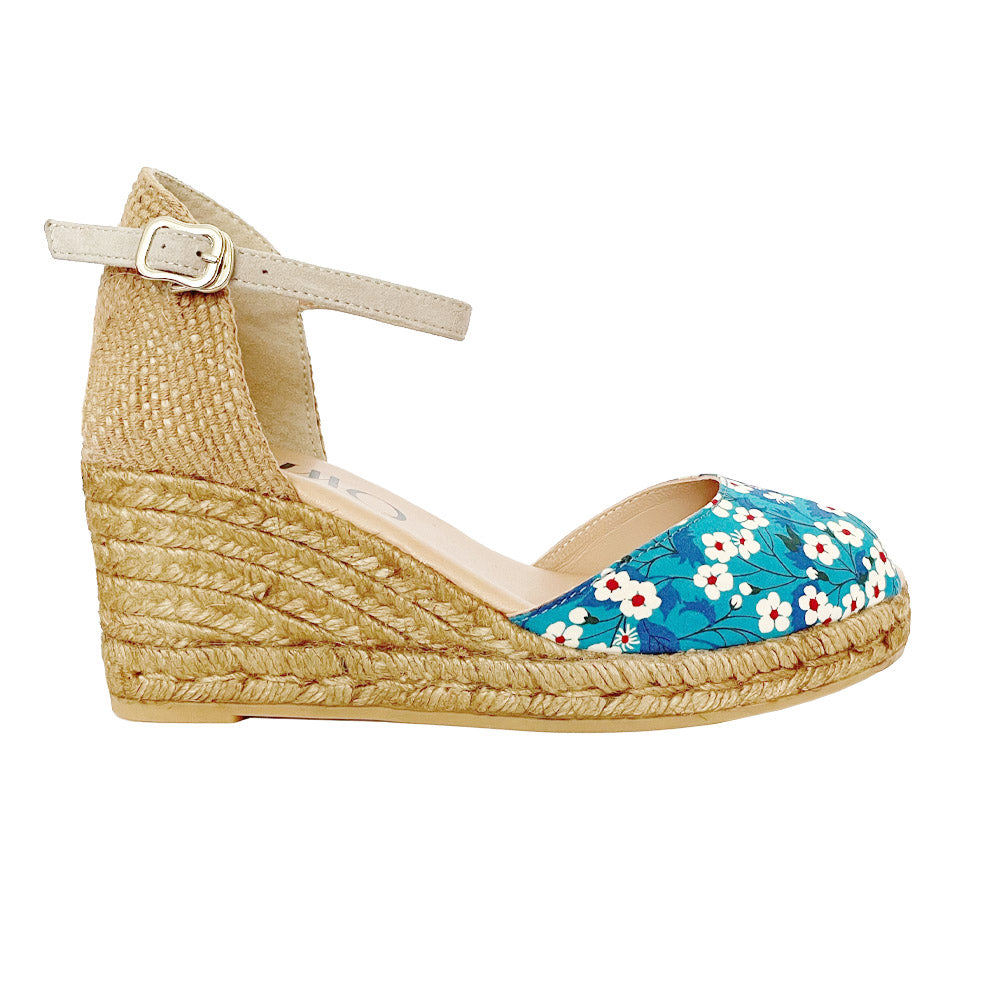 KENSINGTON is a peep-toe espadrilles wedges featuring an elegant suede ankle-strap, with leather on the inside.